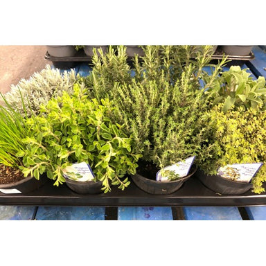 Selection of 8 different potted herbs, variety can change depending on availability.